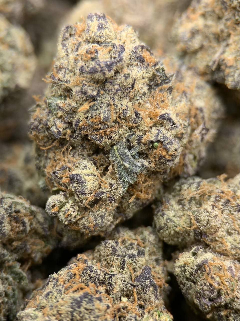 Insane bag appeal – deep greens, purple dusting, heavy frost